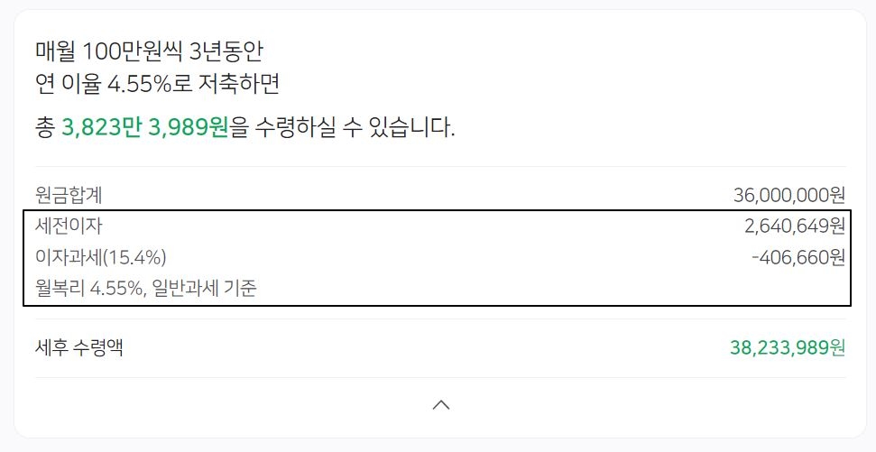 ※ 100만원 납입, 4.55% 복리 적용 예시