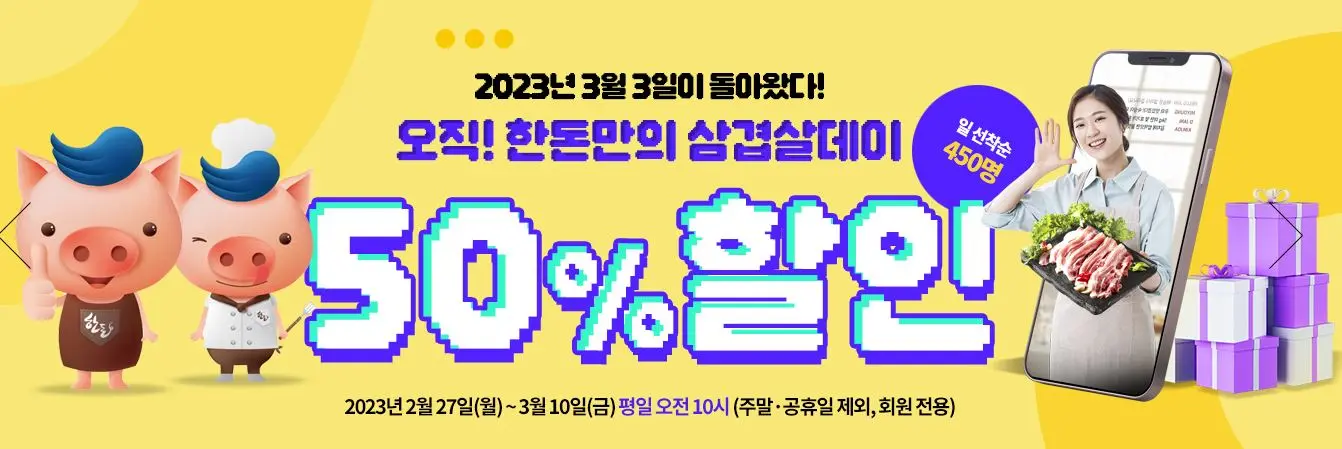 ② 행사 부위 : 한돈 삼겹살 50% 세일