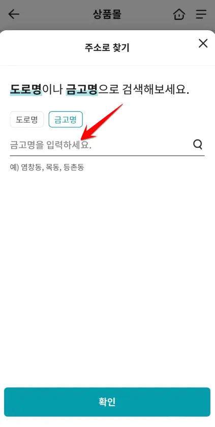 주소로 찾기 -MG더뱅킹 예금(적금) - 도로명이나 금고명 입력