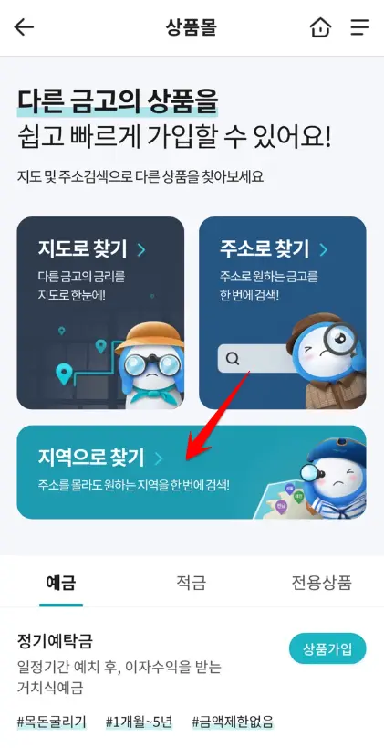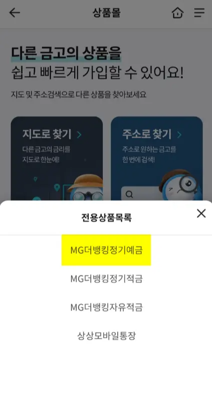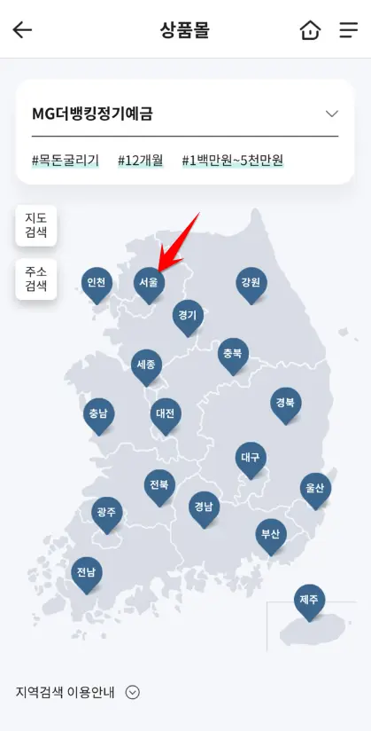 지역으로 찾기-MG더뱅킹 예금(적금)-원하는 지역 선택