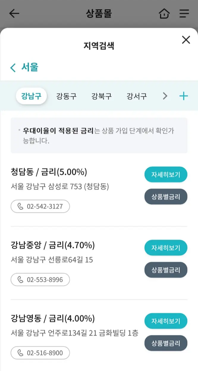 ② 특정 금고의 금리를 보고 싶을 때