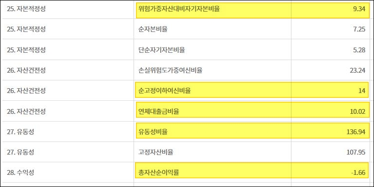 각 단위조합 별 항목명 새마을금고 위험가중자산대비자기자본비율 신협 총자본비율 농협 총자본비율 수협 총자본비율 2. 순고정이하여신비율