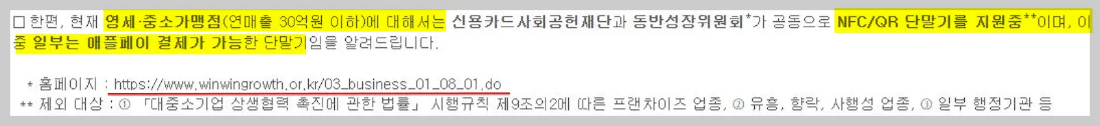 한편 서비스가 도입되면 국내 NFC 단말기 도입량이 불가피하게 늘어날 전망인데요. 금융위원회에 따르면 사회공헌재단과 동반성장위원회가 공동으로 영세, 중소 가맹점에 NFC 단말기를 일부 지원할 예정이라고 밝혔습니다. 어쩔 수 없이 NFC 단말기를 구입하셔야 할 상황이 올 텐데... 조금이라도 도움이 되셨으면 좋겠습니다