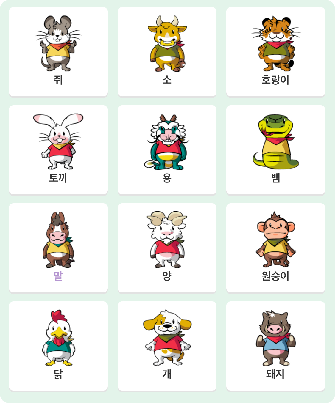 자(子), 축(丑), 인(寅), 묘(卯), 진(辰), 사(巳), 오(午), 미(未), 신(申), 유(酉), 술(戌), 해(亥)