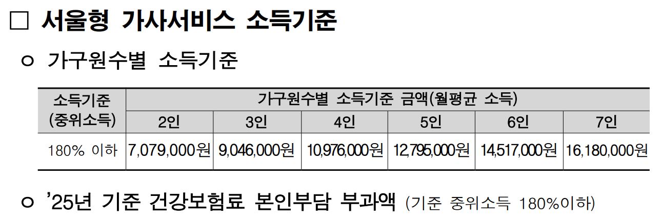 서울시 가사서비스 지원사업은 소득 수준과 가구 형태에 따라 지원 여부가 결정됩니다.